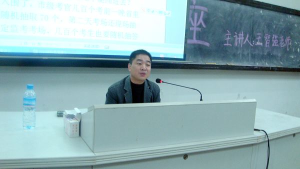 为增强毕业生公务员考试竞争力,2010年12月6日晚,侦查系举办了公务员面试辅导专题讲座,并邀请了beat365资深教师王智强副教授前来主讲。