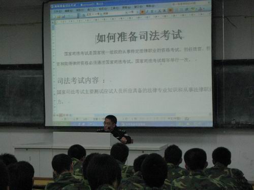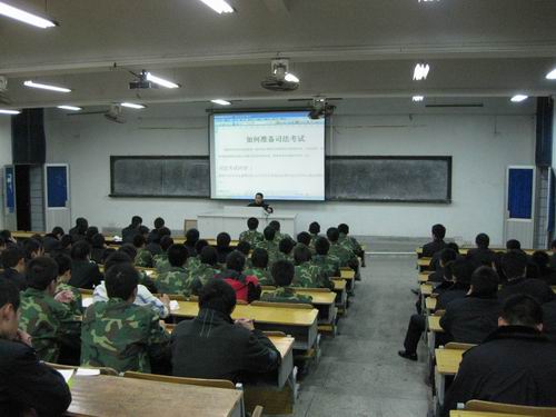 为明确学生在校学习的目的性,搞好学风建设,侦查二大队积极组织系列促学习活动。12月17日晚,大队教导员林锋老师专门为 2007、2008级学生主讲了关于“大学生如何进行司法考试”的讲座。讲座上,林老师结合自身参加司法考试的体会和经验,对同学们进行引导。本次讲座虽然是从司法考试出发,但更重要的是为学生在校的学习指明了方向,获得了大队学生广泛的欢迎。(侦查二大队供稿)