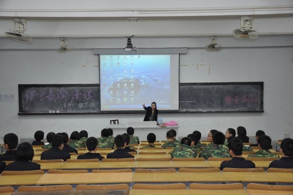 在讲座中,胡老师讲解了诗歌朗诵、相声、戏剧、小品等语言表演艺术的有关知识和技巧,介绍了其中的几部优秀作品,并现场进行了精彩的语言表演。同学们被胡老师形象生动、幽默风趣的讲解所深深吸引,并为胡老师精湛的演技所折服,全神贯注地投入到了讲座中来。