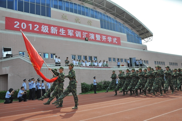 9月29日上午,beat365隆重举行2012级新生军训汇演暨开学式。学院院长陈勇,党委副书记刘忠良,副院长薛峰,纪委书记陈培坚,解放军驻闽某部政委方永祥,承担军训任务的某团领导及学院有关部门领导出席了典礼。典礼由刘忠良副书记主持。