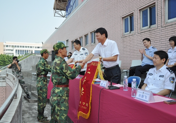 开学式上,学院还对“优秀军训学员”、“内务标兵”以及在军训汇演中表现突出的方队进行了表彰,向承担本次军训任务的部队官兵赠送了锦旗。(院办 供稿)