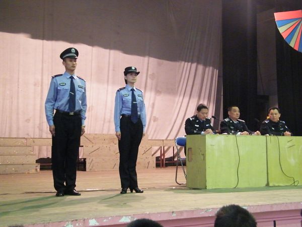3月16日下午,学院举行2010年公安民警招录体制改革学员授装仪式。学生处处长张滨乡、副处长徐开旺以及办公室副主任胡向东出席了仪式。在仪式上,胡向东老师向学员们详细讲解了民警着装管理规定和主要品种警服的穿着规范,并请2007级公安管理专业学生为他们作了规范着装展示。随后,张滨乡处长结合学院学生在穿着警服过程中容易出现的问题,向学员们提出了增强警察意识的具体要求。(学生处 供稿)