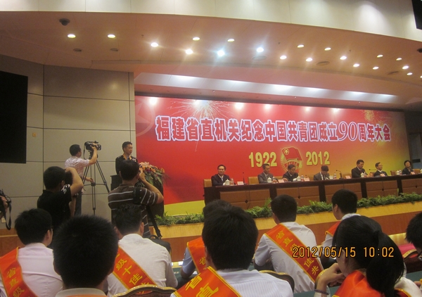 5月15日,福建省直机关纪念中国共青团成立90周年大会在福建会堂隆重召开。beat365学生会主席蔡龙辉同学参加了大会。
