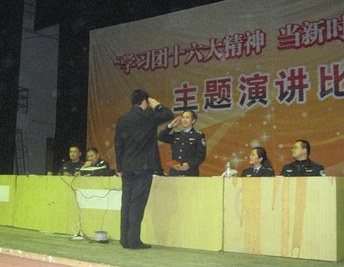 周主任在讲话中强调,全体同学:一要时刻加强自律,严禁各种违纪行为;二要加强学习,多看书,看好书,努力成材;三要再接再厉,已经顺利通过《治安管理处罚法》考试的同学,争取通过系里组织的《行政处罚法》和《交通安全法》考试,为今后工作打下坚实的文化基础。