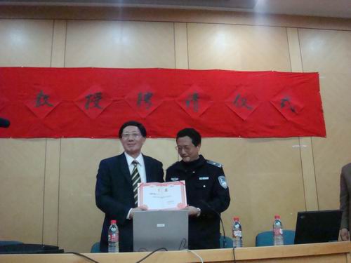(图)院领导刘瑞榕为刘祥南、赵庸两位知名信息安全专家颁发客座教授聘书
