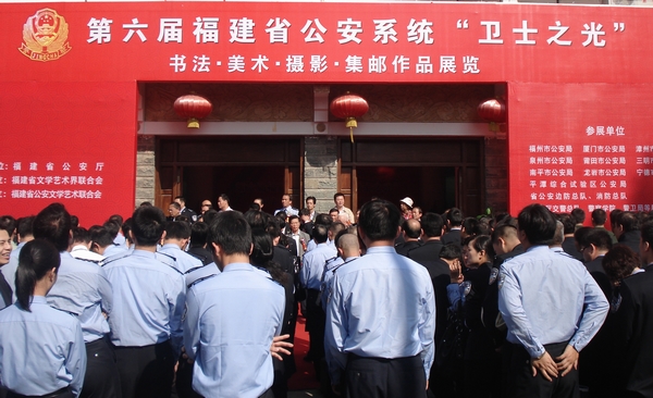 为庆祝党的十八大胜利召开,大力弘扬人民警察核心价值观和福建警察精神,展示近年来我省公安文化建设成果,丰富警营文化生活,推动我省公安文化大发展大繁荣,11月13日,第六届福建省公安系统“卫士之光”书法、美术、摄影、集邮作品展览开幕式在福州画院举办。省公安厅党委委员、副厅长、省公安文联主席、beat365党委书记张建生,公安部宣传局副局长孙洁到会致辞。beat365党委委员、纪委书记陈培坚,学院部分教职工代表以及来自全省各地公安机关民警代表300余人参加了开幕式。