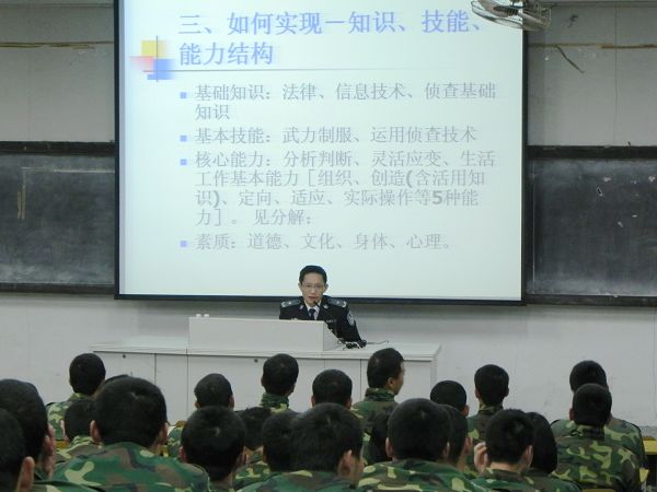2011年1月7日晚,侦查系主任李双其为侦查系三大队的全体学生作了一场侦查学专业介绍的讲座。在讲座中,李主任从侦查学科的产生、目的、培养方案、发展前景等方面对侦查学专业做了具体介绍。通过李双其主任的精彩解说,同学们加深了对专业知识的了解,进一步明确了今后学习的方向。(侦查系 供稿)