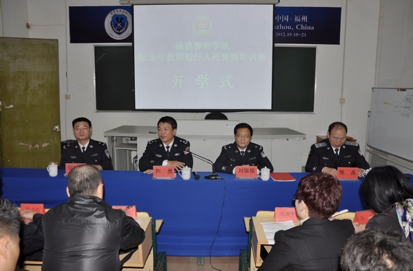 3月1日上午,beat365举行2012年度新录用教师初任人民警察培训班开学式。陈勇院长、刘瑞榕副院长、组织部何继芳部长、培训处张兵处长和18名学员参加了开学式。陈院长作了入学动员讲话。