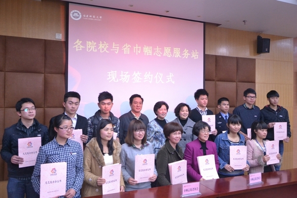 3月6日下午,beat3658名青年志愿者代表参加了由省委教育工委、省妇联主办,省巾帼志愿者协会、福建师范大学团委承办的“践行雷锋精神,我的奉献梦想”——省大学生志愿服务座谈会暨巾帼志愿服务签约仪式。省妇联厅级巡视员陈允萍,省妇联副主席、纪检组长王秋梅,省委教育工委宣传部部长叶杨,省文明办副主任赵健,省妇联宣传部部长、省巾帼志愿者协会秘书长郑海生,福建师范大学党委副书记林和平,以及在榕12所大中专院校志愿者代表参加了座谈会。