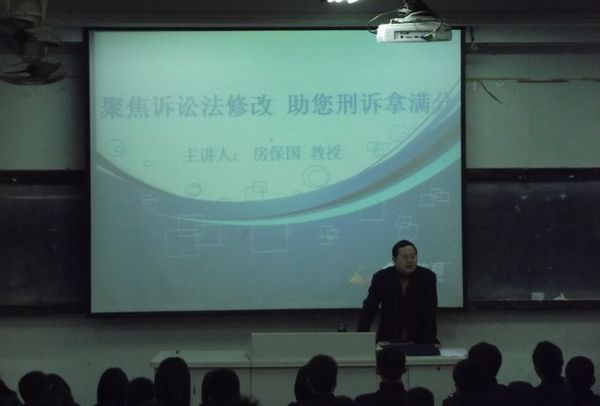 房保国老师以风趣幽默的语言和具体案例分析的方式为师生们讲解了2012年刑事诉讼法以及民事诉讼法在证据制度、强制措施、辩护制度、侦查措施、审判程序、执行规定、特别程序等方面的主要修改内容和改革完善思路。