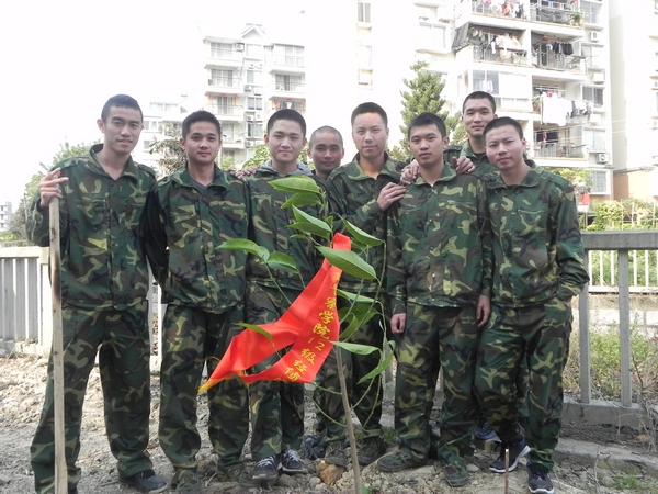 3月11日下午,侦查二大队全体同学带着自购的桂树、白玉兰等三十多株树苗到第三食堂旁的空地开展“我为环境作贡献”义务植树活动。同学们不顾辛劳,精心植树,并在自己种下的树苗前合影留念。