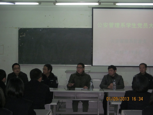 1月9日下午,公安管理系党总支召开学生党员大会,新当选的公管系党总支全体委员胡滨亭、杨述厚、谢子传、吴雄、叶兵等参加了大会。