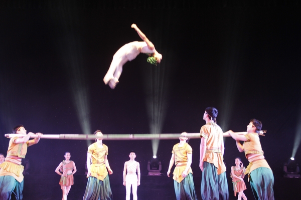 演出以绚烂喜庆的舞蹈拉开序幕。在《穿越——转动地圈》节目中,演员的身体如同在水中游动的鱼儿一般柔软而灵活,令在场观众为之赞叹。《快乐的转盘》用轻松幽默的表演方式赢得同学们的一片笑声。《尖上花盘,底下风光》让师生同时领略了芭蕾和转盘结合的魅力。在唯一单人节目《人之初》表演中,演员旋转的身影给观众一种空中漫步的错觉,尽显力与柔的完美结合。草帽表演《快乐小子》上演的一出“帽子戏法”令人目不暇接。滑稽表演《顶茶缸》和《拍电影》博得了观众阵阵喝彩。《仙女更衣》表演获得了阵阵掌声与笑声。尤为值得一提的是在荣获国际多项大奖的节目《舞者——绳技》中,演员们抖动长绳,变幻出各种形状,展现出一幅宏大壮阔的画面。