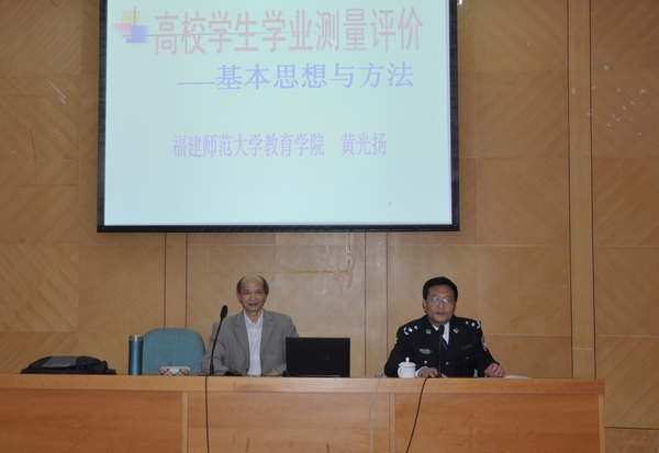 黄光扬教授的讲座风趣幽默、深入浅出,他从高等教育的时代要求和教学特点,教师的能力素养,大学生课业发展的内容框架,高校考试命题的质量指标,试题编写与考试蓝图设计,高校学生学业测量评价模式、维度与方法等六个方面阐述了高校学生学业测量评价的基本思想与方法,使在座的教师深受启发,受益匪浅。