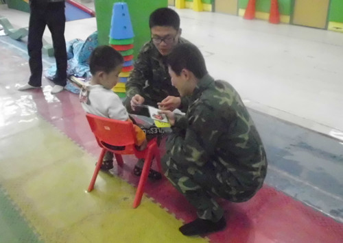 特教院院长热情欢迎志愿者的到来,并简要介绍了特教院和“星星儿童”的情况。在康复老师的指导下,志愿者们来到活动室,与儿童结成对子,教他们看图识字,和他们聊天、做游戏,并送给他们精心准备的礼物。孩子们从陌生、排斥到熟悉,和志愿者们开心地玩耍起来,活动室四处洋溢着欢声笑语。