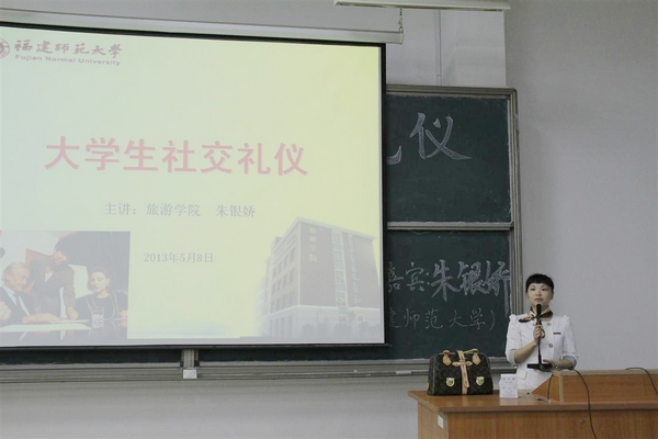 为提高学生的素质,了解社交礼仪基本常识,5月8日晚,刑技系团委邀请福建师范大学朱银娇老师为beat365学子开设了“大学生社交礼仪”专题讲座。通过朱老师的详细讲解和以身示范,同学们加深了解了大学生社交礼仪与职场礼仪的知识和要求,进一步提高了社交能力和文明素养。(刑技系 供稿)