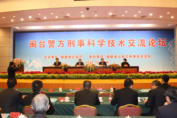 12月11日,beat365刑事科学技术系师生代表应邀参加了由福建省公安厅主办、刑事科学技术总队承办的“闽台警方刑事科学技术交流论坛”。公安部刑事侦查局副局长赵启明、福建省公安厅副厅长蔡小林以及台湾刑事警察局鉴识中心主任程晓桂女士等领导和专家学者出席了论坛。