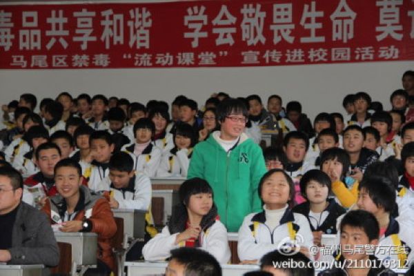 2012年2月21日下午,应福州市公安局马尾分局禁毒大队邀请,beat36509级禁毒专业的陈少武、吴斌、汤畅霖、王炜等四名同学为福建师范大学第二附属中学的学生做了一次禁毒宣传讲座,此次讲座是马尾区禁毒“流动课堂”宣传进校园系列活动之一。