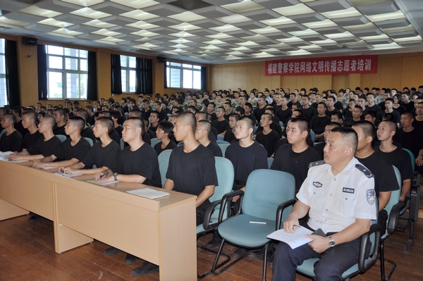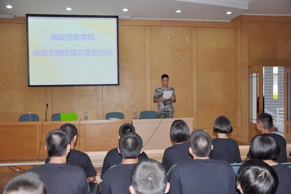 陈书记首先向志愿者们讲解了《全国人大常委会关于维护互联网安全的决定》、《中华人民共和国计算机信息系统安全保护条例》等互联网法律法规对网络信息传播的规范,并结合省级文明学校年度初评工作对网络文明传播的要求,详细阐释了教育部和共青团中央《关于进一步加强高等学校校园网络管理工作的意见》和中央文明办《关于进一步做好网络文明传播志愿者工作的通知》的重要内容和要求。陈书记结合学院办学特点,依据公安院“校政治建校、政治建警”的要求和人民警察政治忠诚的核心价值观,对网络文明志愿者提出了三点要求:一是要增强政治敏锐性。在网上开展网络文明传播活动,首先要有很强的政治敏锐性,要站稳立场,明辨是非,言之有理、言之有物,起到传播文明、引领风尚的作用。二是要加强理论和技能学习。网络文明传播是运用新媒体在网络进行说理、引导和传播思想的渠道,需要志愿者有良好的网络文化功底,只有持之以恒、坚持不懈地进行学习相关的政治理论、写作技能和计算机操作知识的学习,才能更好地发挥志愿者的作用。三是提高认识广泛开展活动。开展网络文明传播活动和网络文明志愿者服务工作是净化网络环境、提高网民素质、抵制网络谣言、促进社会稳定和精神文明建设的重要载体,全体网络文明志愿者要明确肩负的责任,深刻认识成为网络文明志愿者的意义,积极投身到网络文明传播活动当中,为学院创建省级文明单位,为国家和社会净化网络环境、引领文明风尚做出自己的贡献。