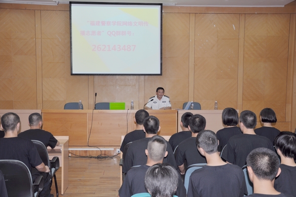 福州公安局宣传教育处网络舆论科科长马腾宙同志为志愿者作《政务微博管理与应用》的讲座。马警官语言幽默,事例丰富详实,紧密联系公安工作的实际,详细讲解了公安微博应确立的角色定位、织博理念和成功做法,使师生们增加了微博管理和应用的相关知识和技能。