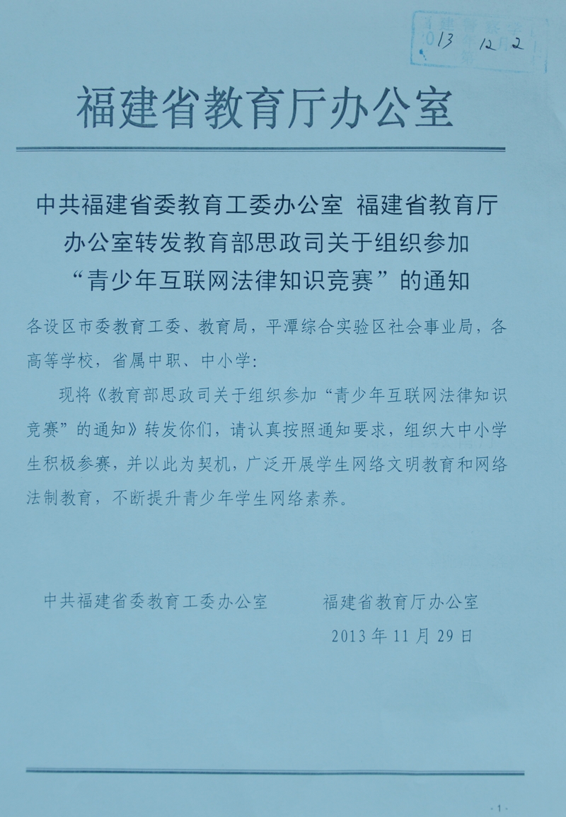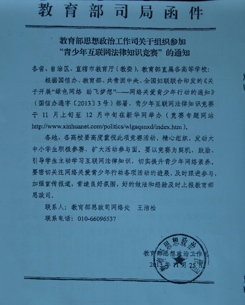 转发教育部思政司关于组织“青少年互联网法律知识竞赛”的通知