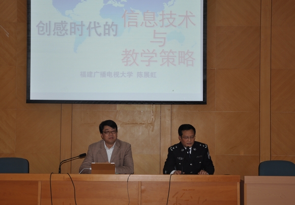 陈展虹教授从信息技术发展概况及教学应用、年度最新教育技术应用、信息技术环境下教学策略的选择等三个方面阐述了信息技术在现代教育教学中的最新应用,讲座风趣幽默、深入浅出,听讲座的教师们深受启发,受益匪浅。