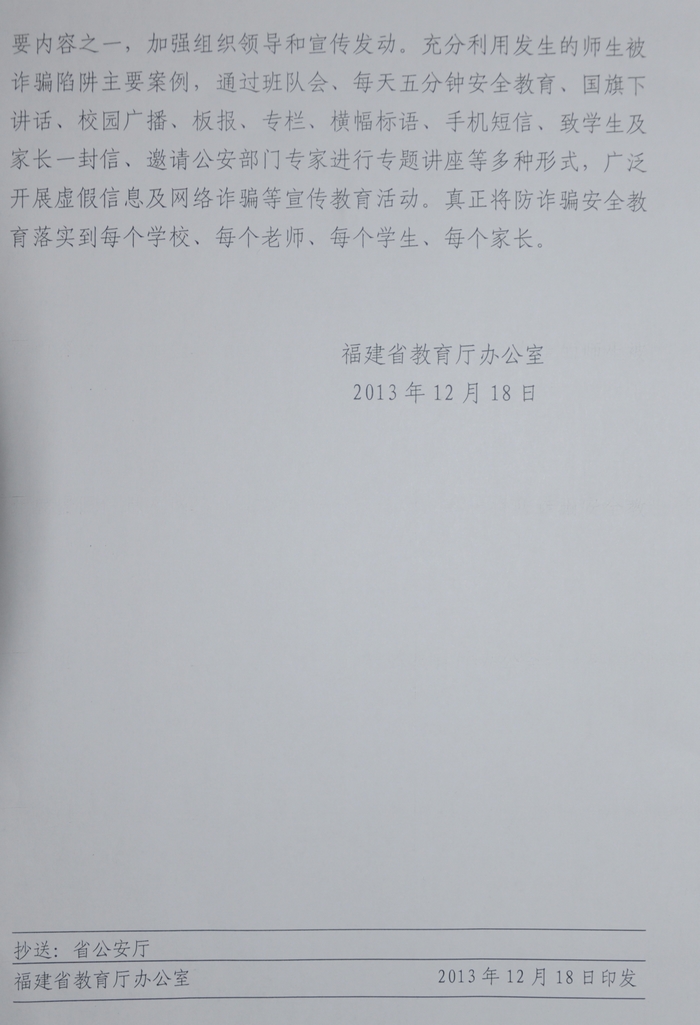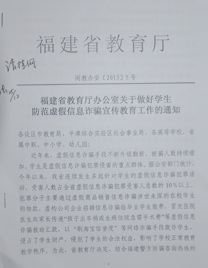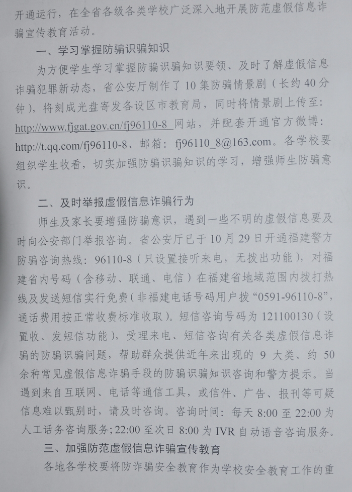 福建省教育厅办公室关于做好学生防范虚假信息诈骗宣传教育工作的通知