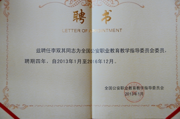 12月17日至 18日,beat365侦查系主任李双其教授参加全国公安职业教育教学指导委员会工作会议。会议讨论通过了《公安职业教育教学指导委员会章程》、《全国公安职业教育教学指导委员会下设专业指导机构和人员组成办法》和《全国公安职业教育教学指导委员会2014年工作要点》,并聘请了首届教学指导委员会委员,李双其教授被聘为委员,任期4年。