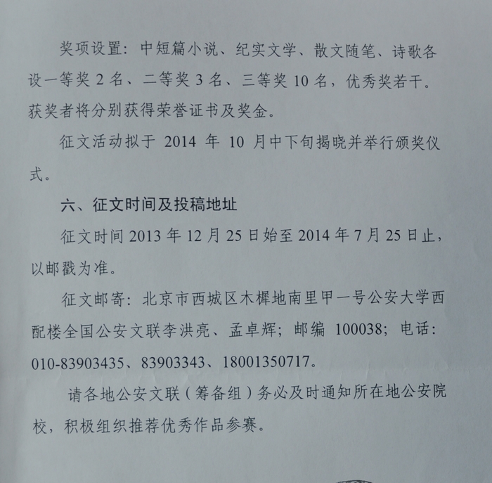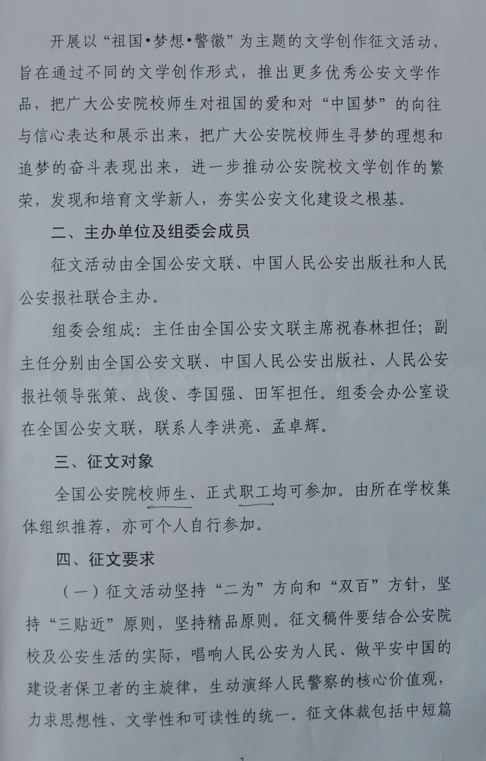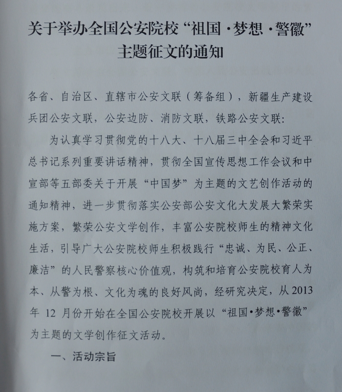 关于举办全国公安院校“祖国 梦想 警徽”主题征文的通知