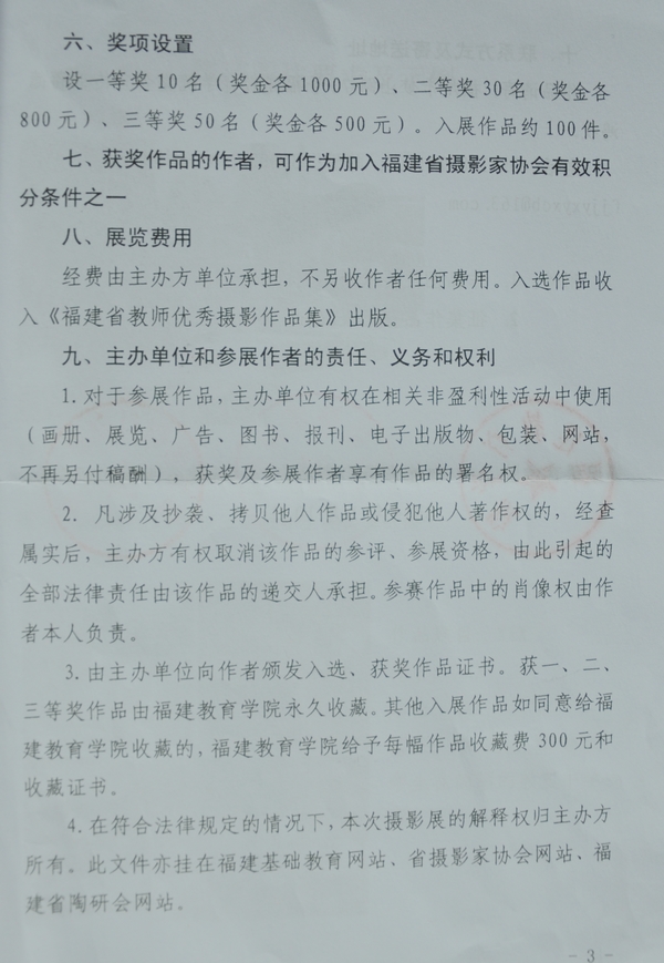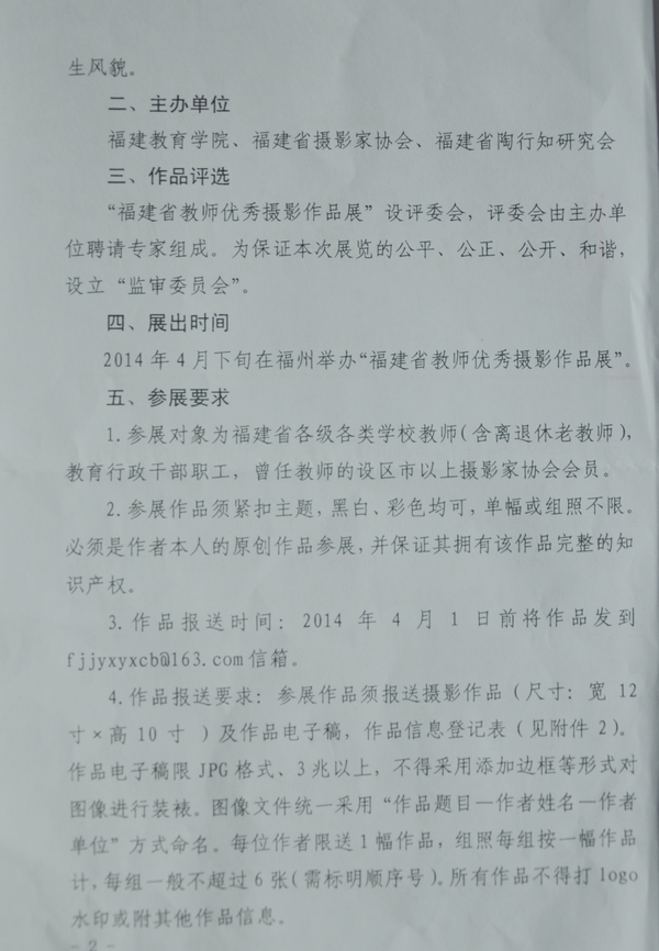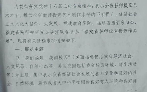 福建省摄影家协会等决定联合举办“福建省教师优秀摄影作品展”的通知