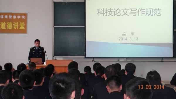 仪式结束后,刑技系教师孟梁博士为同学们作了题为“科技论文写作规范”的讲座。