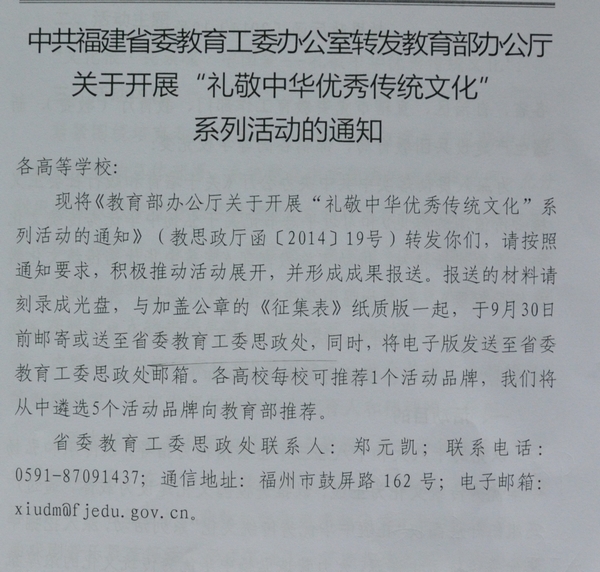 关于开展“礼敬中华优秀传统文化”系列活动的通知