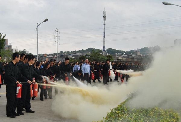 灭火器材的种类、性能、适应火种及其操作要领,并按照规范,认真进行了实践操作,熟练掌握了各种灭火器材的使用方法,顺利完成了演练。