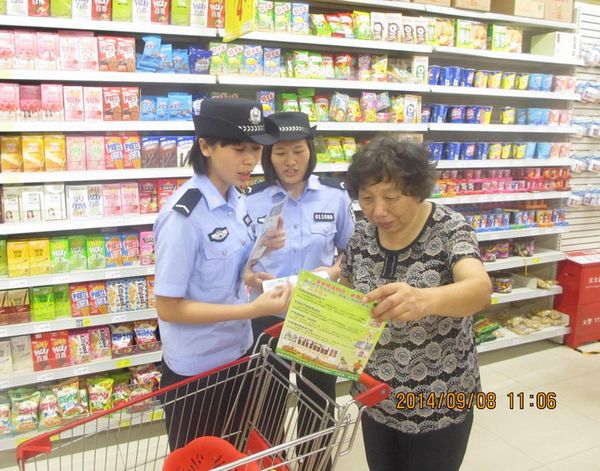 月8日,在仓山区对湖派出所的指导下,公安管理系二大队组织学生在永辉超市(首山店)附近开展防诈骗公益宣传活动。