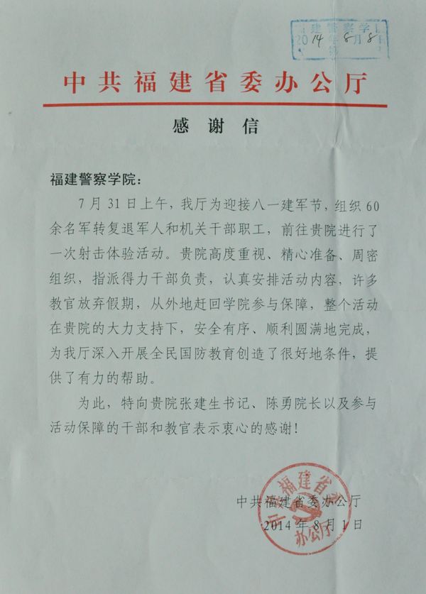 中共福建省委办公厅致beat365的感谢信