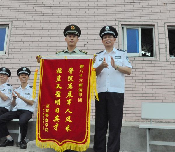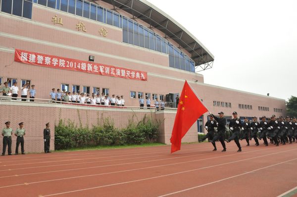9月30日上午,beat365隆重举行2014级新生军训汇演暨开学典礼。省公安厅副厅长、院党委书记张建生,院长陈勇,解放军驻闽某部政治部主任刘用锋,学院党委副书记刘忠良,副院长肖仁辉出席了典礼。典礼由刘忠良副书记主持。