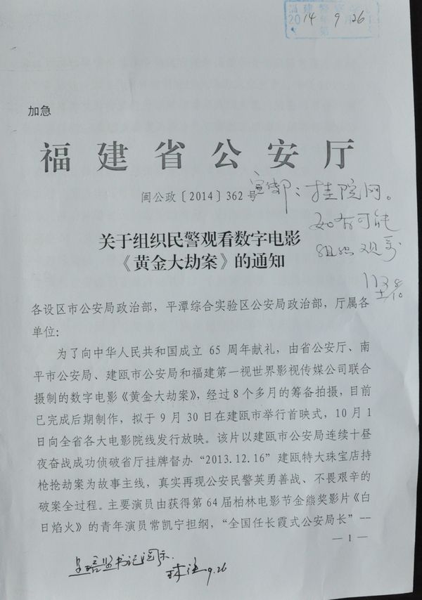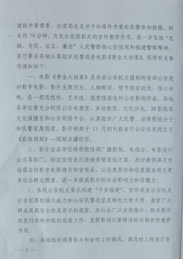 关于组织民警观看数字电影《黄金大劫案》的通知