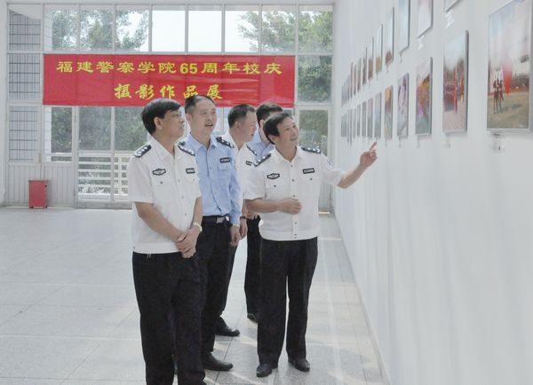 省公安厅副厅长、院党委书记张建生,院长陈勇,院党委副书记刘忠良,副院长刘瑞榕,院纪委书记陈培坚,副院长肖仁辉等院领导以及全院师生分批参观了学院六十五周年校庆“邮展”、“学生科研成果展”、“摄影作品展”、“师生书画展”以及校史《铸剑》图文展等庆祝活动。在活动中,师生们用稀有珍贵的邮票、荣获奖项的科研成果、较高艺术水平的书画、美轮美奂的照片以及记录学院六十五年成长历程的图文资料,展现了学院的发展历史、办学成果,师生的综合素质和精神风貌。
