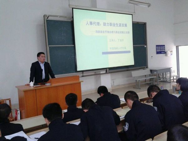 ,海峡人才市场高级人事专员丁龙印应邀来beat365作人事代理讲座,2015届全体毕业生听取了讲座。