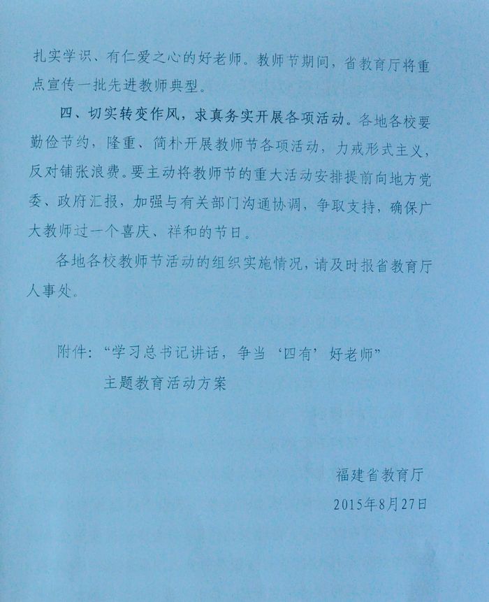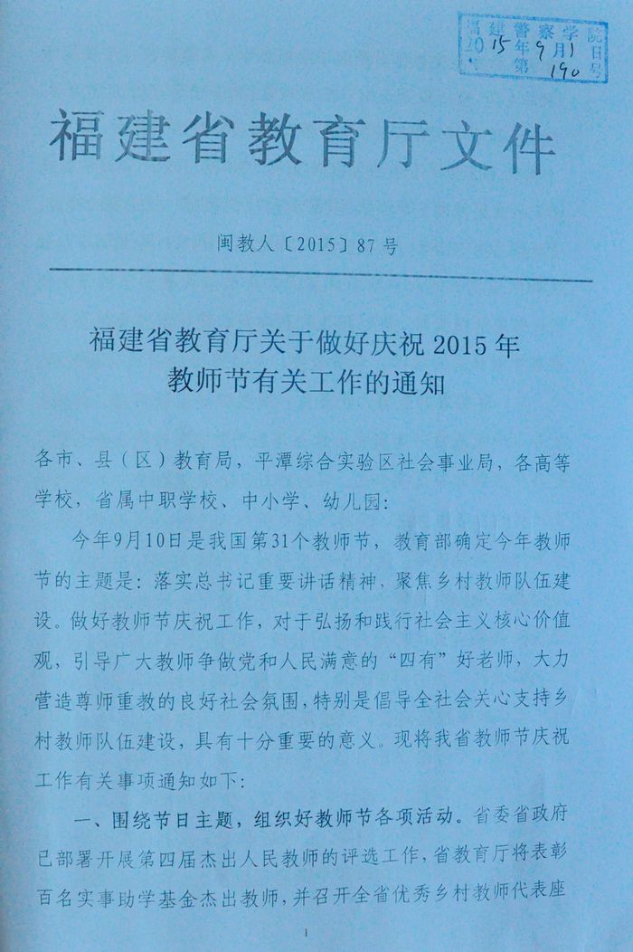 教育厅关于做好庆祝2015年教师节有关工作的通知