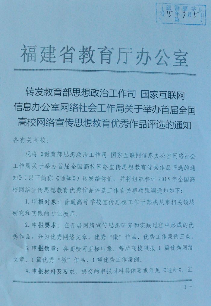 转发教育部思政司等关于举办首届全国高校网络宣传思想教育优秀作品评选的通知