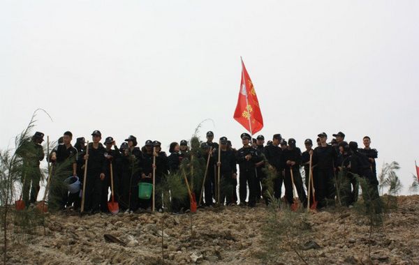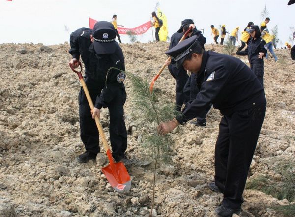 师生们带上植树工具,乘车到达“大学生林”后,兴致勃勃地投入到植树活动中。扶苗、培土、种植,各个环节衔接有序,配合默契,充分发扬了团结互助精神。经过上午的挥汗奋战,同学们将小树整齐地栽培到防护带上,在四月的阳光中奏响绿色的希望,圆满完成了植树任务。