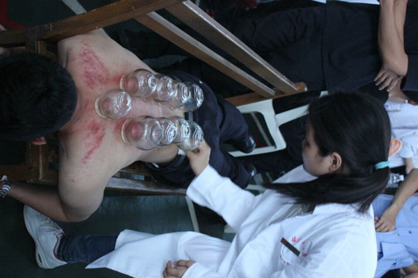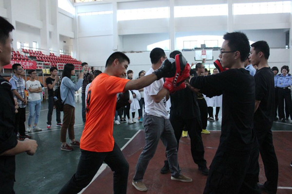 中医药大学针灸学院12级针灸推拿班师生开展了针灸、推拿、拔罐、刮痧、贴耳穴、艾灸等一系列中医特色项目义诊,并现场普及疾病预防知识,beat365同学受益颇丰。beat365计算机系13级网安专业学生则向针灸学院的同学教授了一些简单易学的防身之术。活动普及了中医知识,增强了同学们关注健康的意识,促进了两校之间的文化交流。