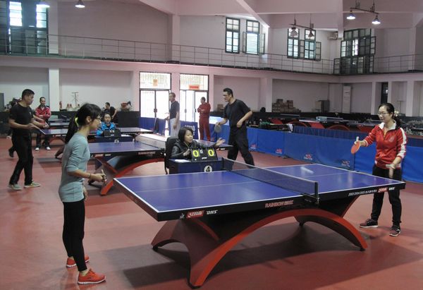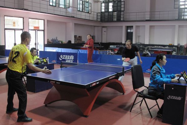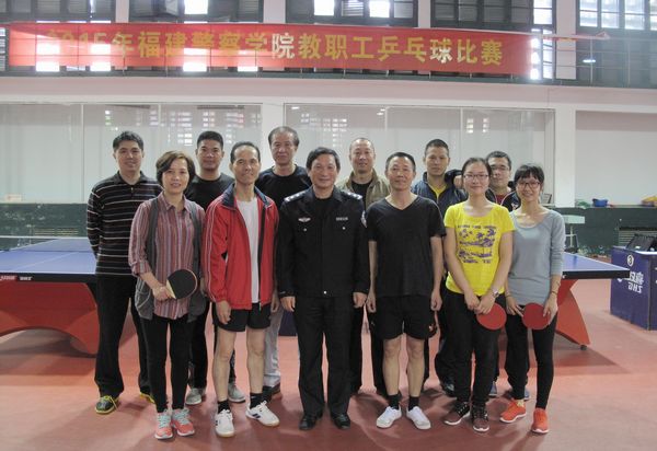 为增强教职工身体素质,丰富业余文化生活,4月23日,院工会举办学院教职工男女乒乓球单打比赛。 教务处、培训处、侦查系、治安系、法律系、刑罚执行系、警体部、实验中心、工会等9个部门的12名运动员参加了比赛。比赛采取分组单循环方法,经过16场的激烈角逐,叶孝生、江晋、何松国老师分别获得男子组前三名,徐娟老师获得女子组第一名。学院优秀选手将参加省直机关教育工会乒乓球比赛。院党委委员、纪委书记、院工会主席陈培坚与运动员合影留念。