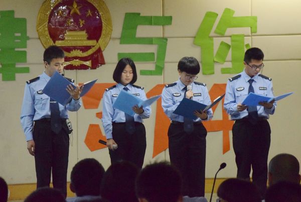 为提升法律素质,营造法治文化氛围,6月1日晚,法律一大队举办“法律与你1314”比赛。 比赛以学生区队班组为单位,各班组以法治为主题,编排形式多样的节目上台表演,尽情展现对法治的认识和班组的风采。比赛现场气氛热烈,教育性、娱乐性强,受到了同学们的喜爱。最终,131区队4班的《百变司考秀》获得一等奖。法律系主任胡宝珍、党总支副书记吴文平等老师到场观看并作精彩点评。