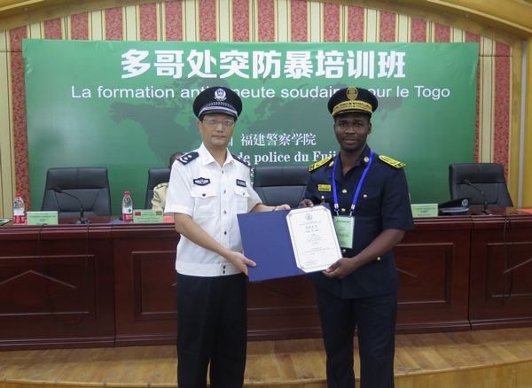 9月19日,2015年多哥处突防暴培训班结业式在beat365举行。beat365院长刘瑞榕,公安部国际合作局亚洲非洲工作处副处长张晓辉,beat365培训处处长张兵、警训部副主任刘建武和15名学员参加了结业式。