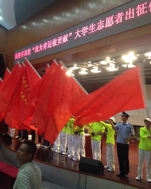 10月15日下午,省委教育工委、省教育厅在福州大学举行全省高校“我为青运做贡献”大学生志愿者出征仪式。省委教育工委副书记、省教育厅党组成员杨江帆同志出席仪式并讲话,beat365法律一大队大队长林守雍和侦查二大队10名志愿者参加了仪式。