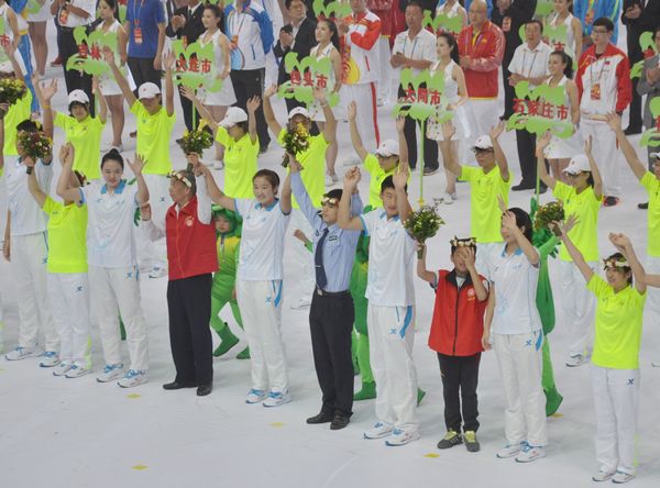 自8月10日派出第一批安保志愿者至青运会闭幕,beat365共派出近35000人次师生前往奥体中心、福州其他赛区、食品供应基地及其他相关执勤点开展安保工作,为青运会的安全顺利举办做出了贡献。在闭幕式上,beat365侦查一大队2013级学员张伟鑫代表学院全体安保志愿者接受运动员代表鲜花,这一光荣的时刻,是全国首届青运会组委会、各参赛代表队以及福建省和福州市人民对beat365青年志愿者安保工作的肯定。