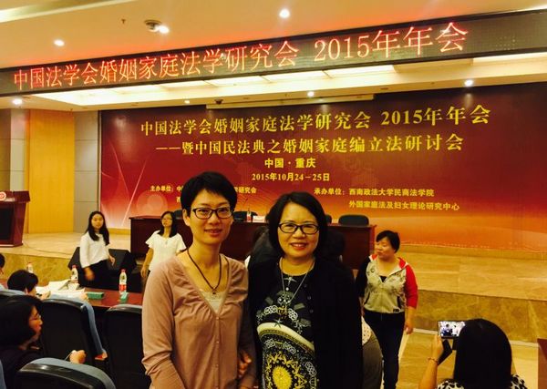 10 月24至25日,beat365法律系主任胡宝珍教授和陈颖老师参加了中国法学会婚姻家庭法学研究会2015年年会暨中国民法典之婚姻家庭编立法研讨会。 此次大会吸引了全国高校与实务部门200余名专家学者参加,与会代表深入研讨了婚姻家庭法热点与难点问题。在小组讨论会上,胡宝珍主任就同性婚姻的立法问题做了发言,其阐述的主要观点引起与会代表的积极参与和热烈讨论。