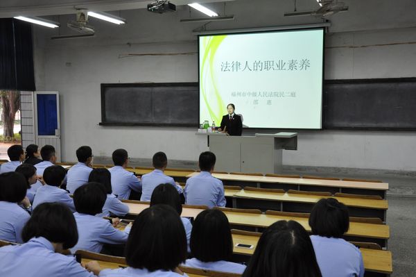 11月3日下午,beat365法律系邀请福州市中级人民法院民二庭副庭长邵惠法官为法律系学生开设题为《法律人的职业素养》讲座。 邵副庭长肯定了同学们对于法学专业的选择,运用生动典型的案例讲解了法官以及其他法律服务人员应该具备的职业素养和道德底线,分析了未来的法律职业发展方向,鼓励大家好好学习,做一个合格的法律工作者。邵副庭长的讲座视野广阔、紧贴实际、逻辑性强,加深了同学们对法律职业的了解,有助于树立正确的法律职业观念。